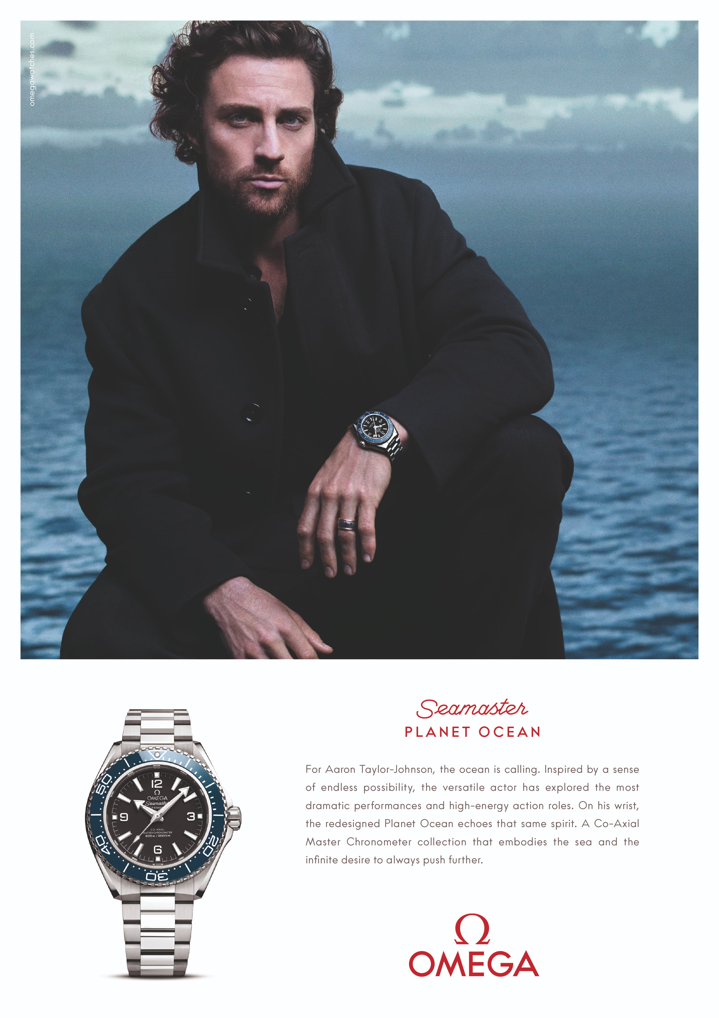 アーロン・テイラー=ジョンソンは、キャリアを通じて幅広い演技力を発揮し、ドラマティックな役柄からエネルギッシュなアクションシーンまで多彩にこなす俳優として知られています。今回のキャンペーンで、新しいブルーモデルを着用した彼は、「私はシーマスターにとても愛着を持っており、毎日身につけています。このコレクションには圧倒的な魅力がありますね。新しいプラネットオーシャンの発表に関われること、そしてその伝統を受け継げることを誇りに思います。」と語りました。