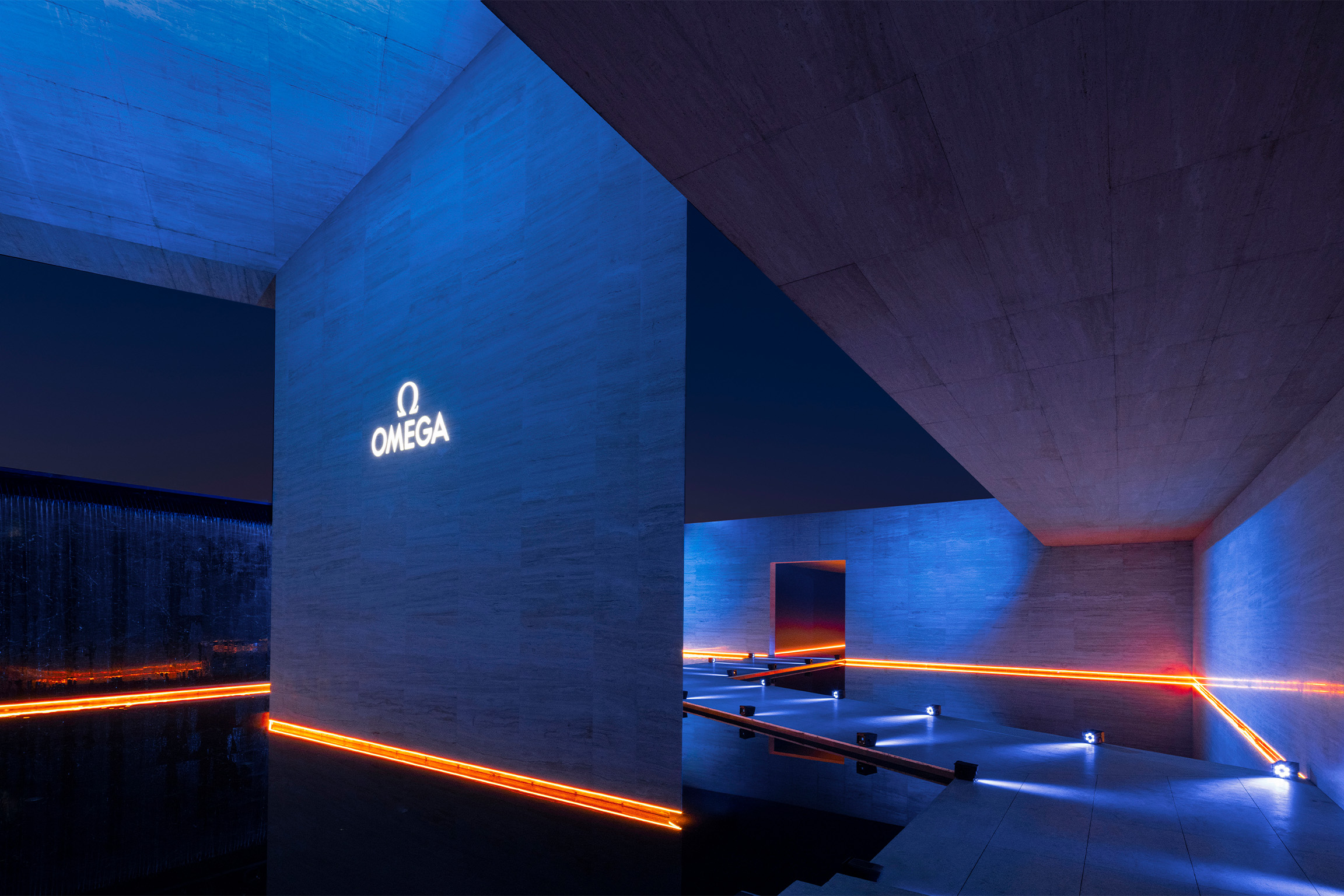 イベントの幕開けとともに、黄金の陽光が水面を照らし、オメガのシグネチャーカラーであるオレンジの光が会場を包み込みました。夜の深まりとともに空間は鮮烈な光に照らされ、海洋を思わせるダイナミックな雰囲気を演出。この光と色の調和は、新作のカラーテーマを象徴し、オメガが培ってきた海洋探査へのオマージュとなりました。ゲストは、会場中央に一堂した最新モデルを鑑賞しながら、オメガのダイバーズウォッチの革新とパイオニアとして築き上げてきた歴史を間近で体感しました。