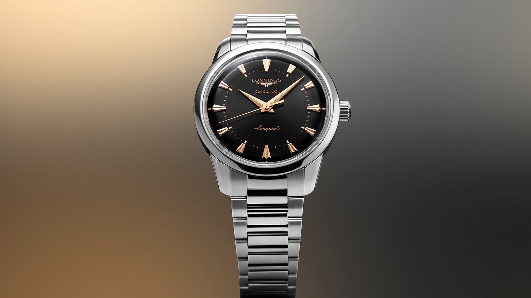 「コンクエスト ヘリテージ」の新作モデルは、ドーム型サンレイダイアルを備え、ヘリテージデザインの美学が際立つカラーバリエーションを展開。ヴィンテージの趣が漂うブラウン、グリーン、ブラックの各ダイアルには、ファセット加工を施したローズゴールドカラーのアプライドインデックスを採用。ブルーダイアルにはロジウムカラー、シルバーダイアルにはイエローゴールドカラーのアプライドインデックスを組み合わせ、多彩なバリエーションをラインナップします。時針と分針は、ロジウムカラー、ローズゴールドカラーまたはイエローゴールドカラーをインデックスにあわせて採用し、どのようなライティングの下でも最高の視認性を実現するスーパールミノバ®が施されています。
