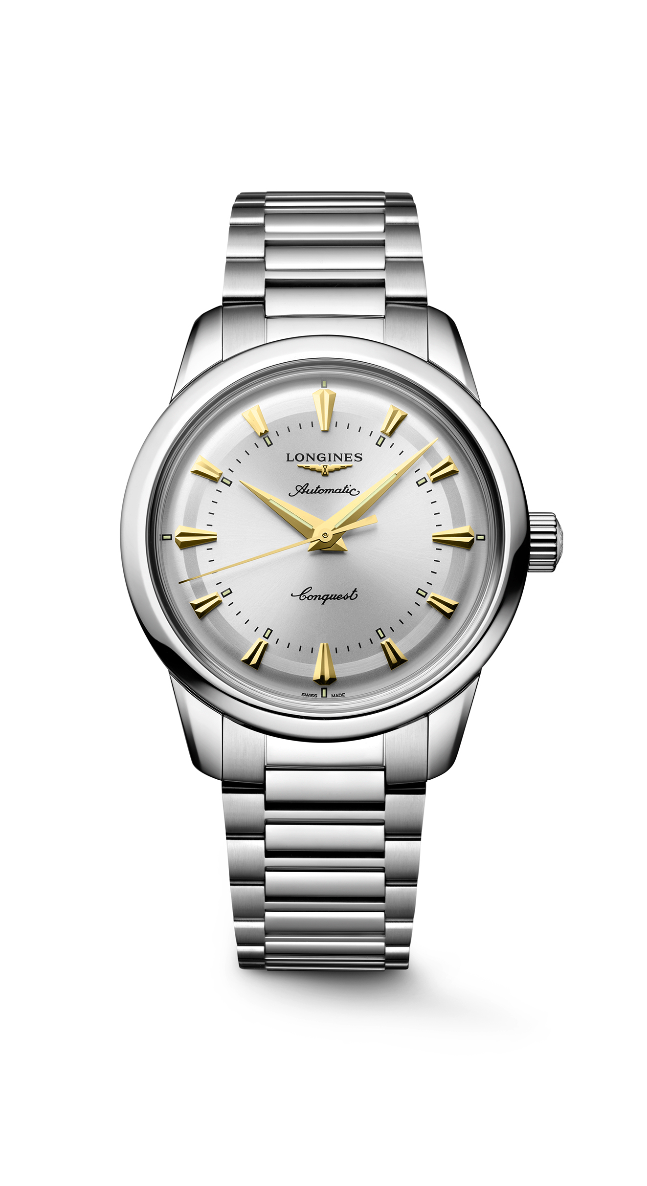 新作「コンクエスト ヘリテージ」は、マイクロアジャストメント(微調整可能)機能を備えたダブルセーフティ フォールディングクラスプ付きのステンレススティール製ブレスレット、あるいはステンレススティール製ヘリテージピンバックル付属のブラウン、またはブラックレザー製ストラップにより、デイリーに活躍するモダンヴィンテージなスタイルを完成させます。