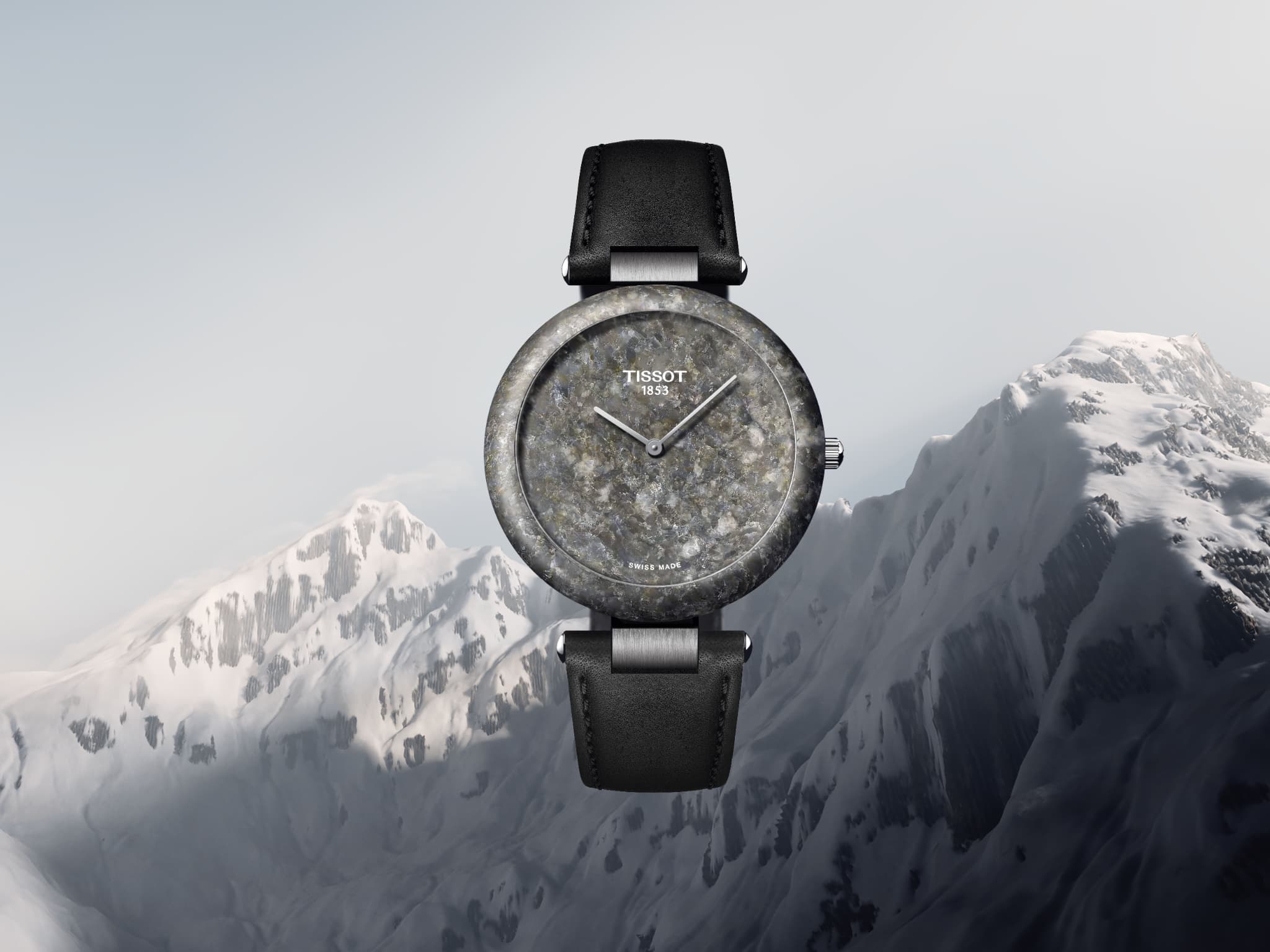 ロックウォッチは、ティソの故郷であるスイス・アルプスから採掘した天然の花崗岩をケース素材に採用した、ブランドの革新性と自然への敬意を象徴するタイムピースです。1985年の誕生当時、天然石を時計ケースに用いるという大胆な発想で注目を集めました。石それぞれが持つ自然の模様により、同じものが二つと存在しない唯一無二の表情を生み出します。