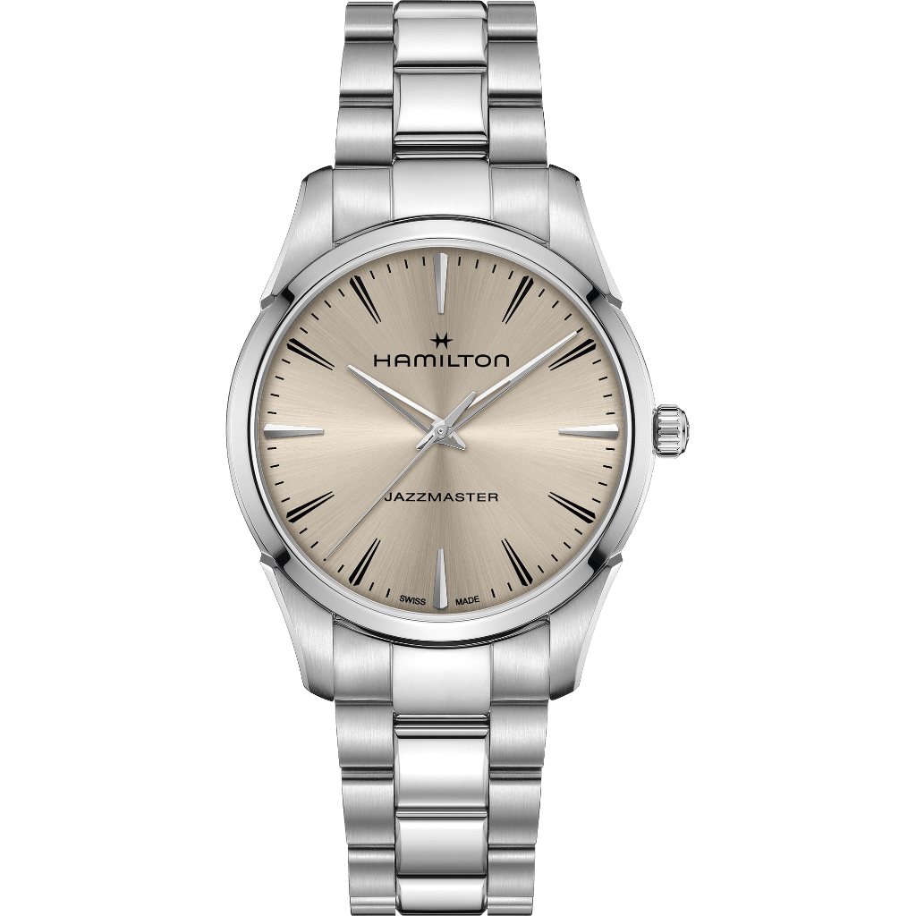 信頼性の高いクォーツムーブメントを搭載した「ジャズマスター クォーツ」は、確かな精度で正確に時を刻みます。それは、ハミルトンが培ってきたデザインとクラフツマンシップの世界へと誘う招待状でもあります。優雅さは意図的に、手にとりやすい形で、そして長く愛されるように構築されています。