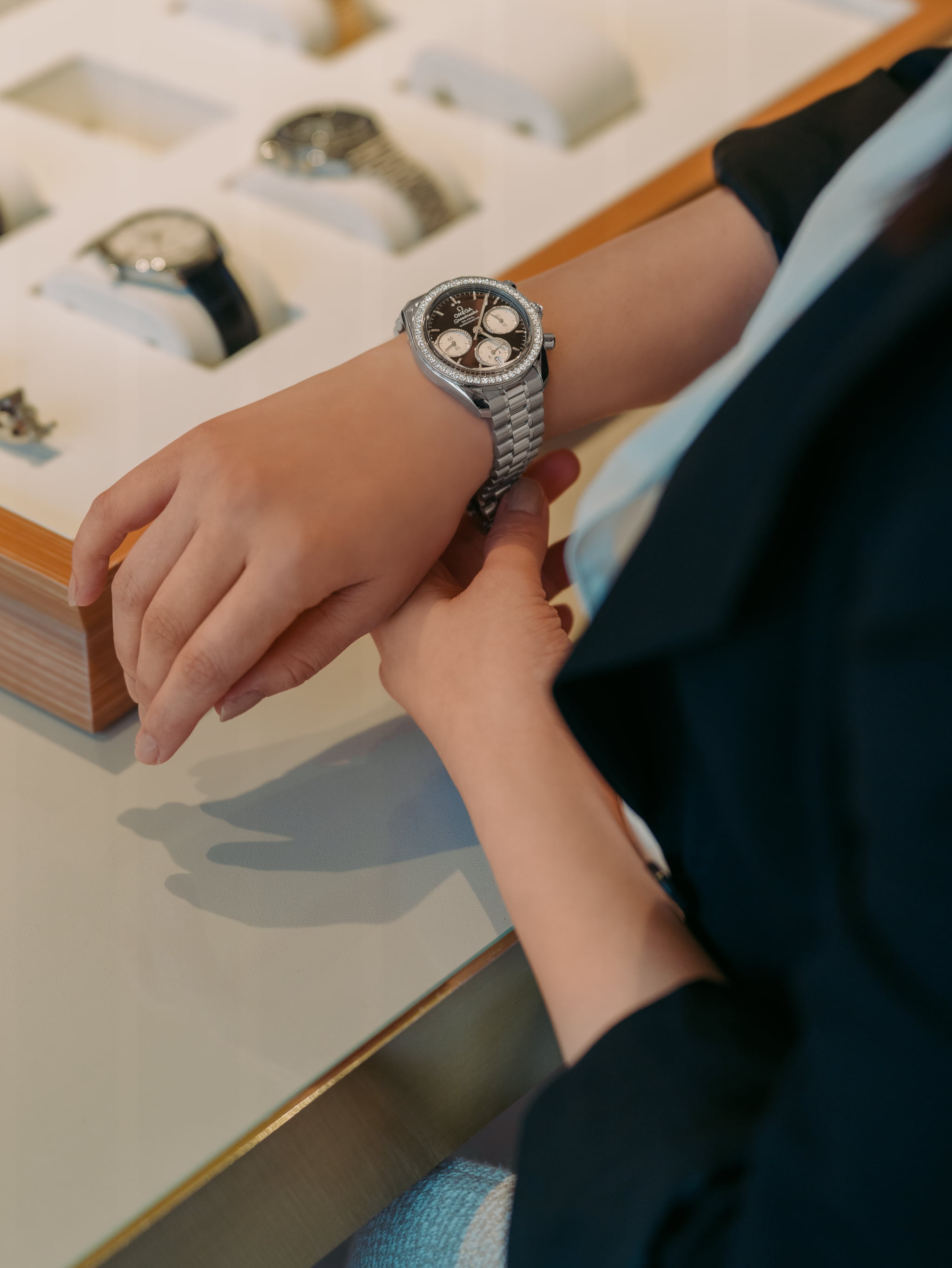 最後に訪れたブティックでは、ミュージアムや工房で説明を受けたモデルの現行コレクションに 加え、最新作が体現する現代的なクリエイションをご覧になり、歴史、技術、そしてデザインが一体 となったオメガの世界観を包括的に体感しました。 フレンド・オブ・ザ・ブランド