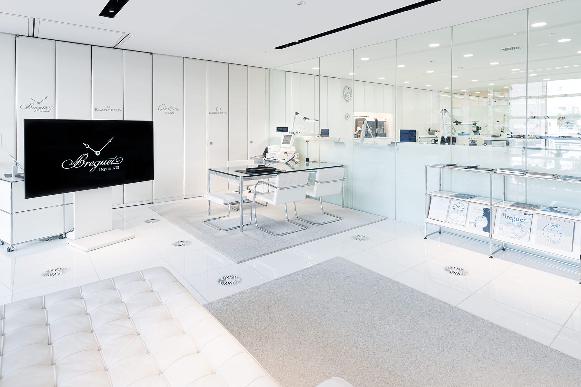その<ファーム>の工房を彷彿とさせる格調高いインテリアを備えた【ブランパン ブティック 銀座】では、1735年から受け継がれてきた伝統と革新の技術を結集したタイムピースの数々を、お寛ぎいただける空間の中でゆっくりとご覧いただけます。