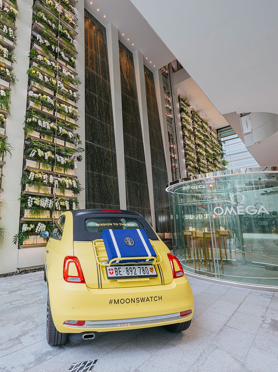 スイスを代表する時計ブランドを擁するスウォッチ グループにふさわしく、この建物は機械仕掛けのからくりのように動く仕掛けがいくつも存在します。また、色とりどりの花で埋め尽くされた壁面や側面の滝は自然との共生を感じさせます。テクノロジーとアートな要素が取り入れられ、まさに美術館を彷彿させる贅沢な空間芸術となっているのです。黄昏時から夜にかけては美しくライトアップされ、幻想的な姿を現します。