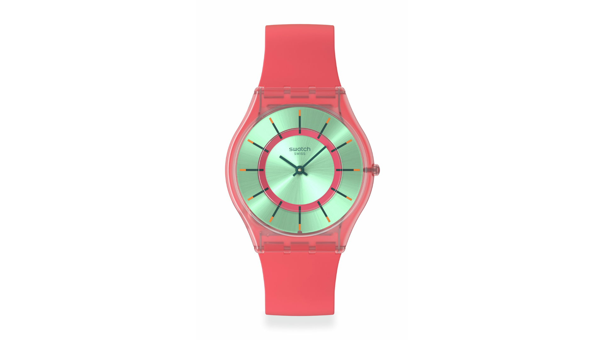 実用性とセンスがシームレスに組み合わせられたSwatch ESSENTIALSは、シーズンの最もホットなカラーを用いて文字盤とストラップに広がるカラーグラデーションが特徴です。