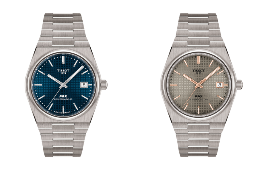 ディープブルーの文字盤にニッケル仕上げのバトン針とアプライドインデックスを組み合わせたモデルと、チタニウムそのものに敬意を表したグレーの文字盤に、対照的なローズゴールドの針とインデックスを配したモデルの2種類が登場します。いずれもPRX パワーマティック 80の象徴的な要素であるワッフルパターンの文字盤を備え、コレクションの大胆でモダンなスピリットを強調しながら、優れた視認性を確保しています。