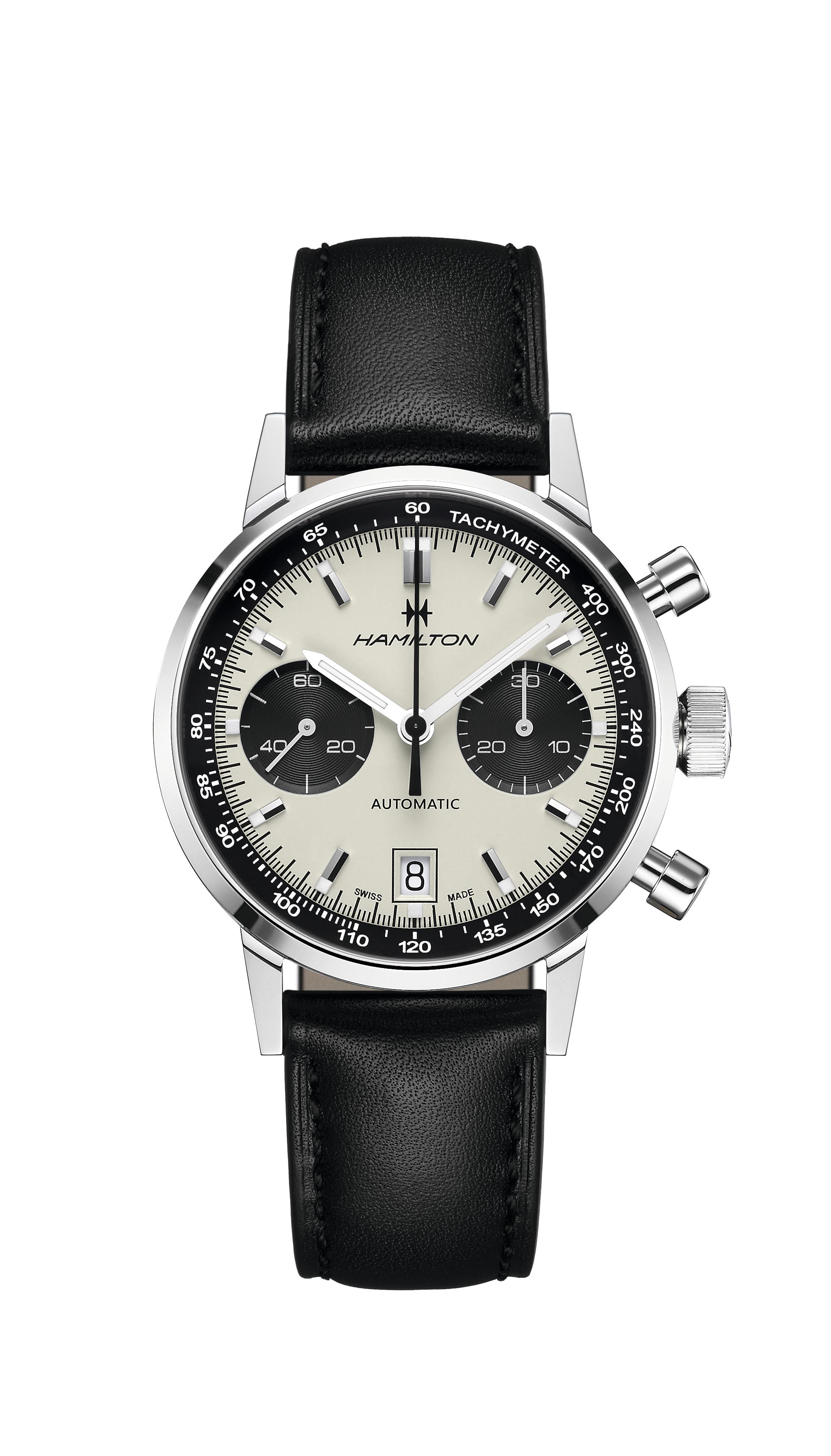 「イントラマティック オートクロノ」は、レトロなモータースポーツの美学を纏ったアメリカンクラシック。象徴的なパンダダイヤルに、自動巻きクロノグラフムーブメントを搭載し、精度とスタイルを両立します。ヴィンテージを愛する人にも、スリルを追い求める人にもふさわしい、タイムレスな一本です。