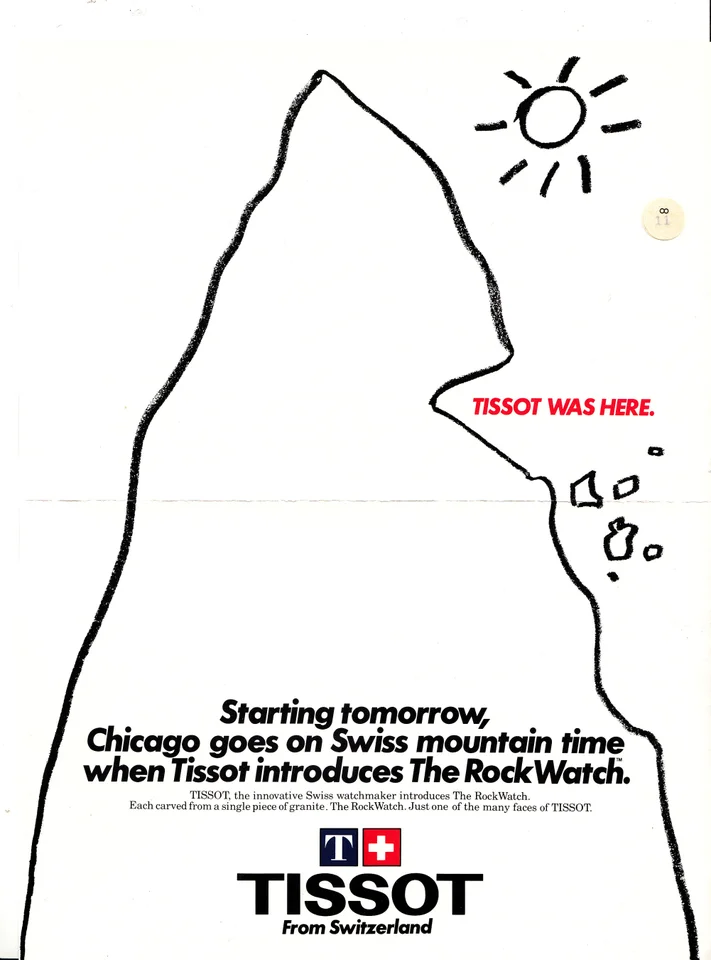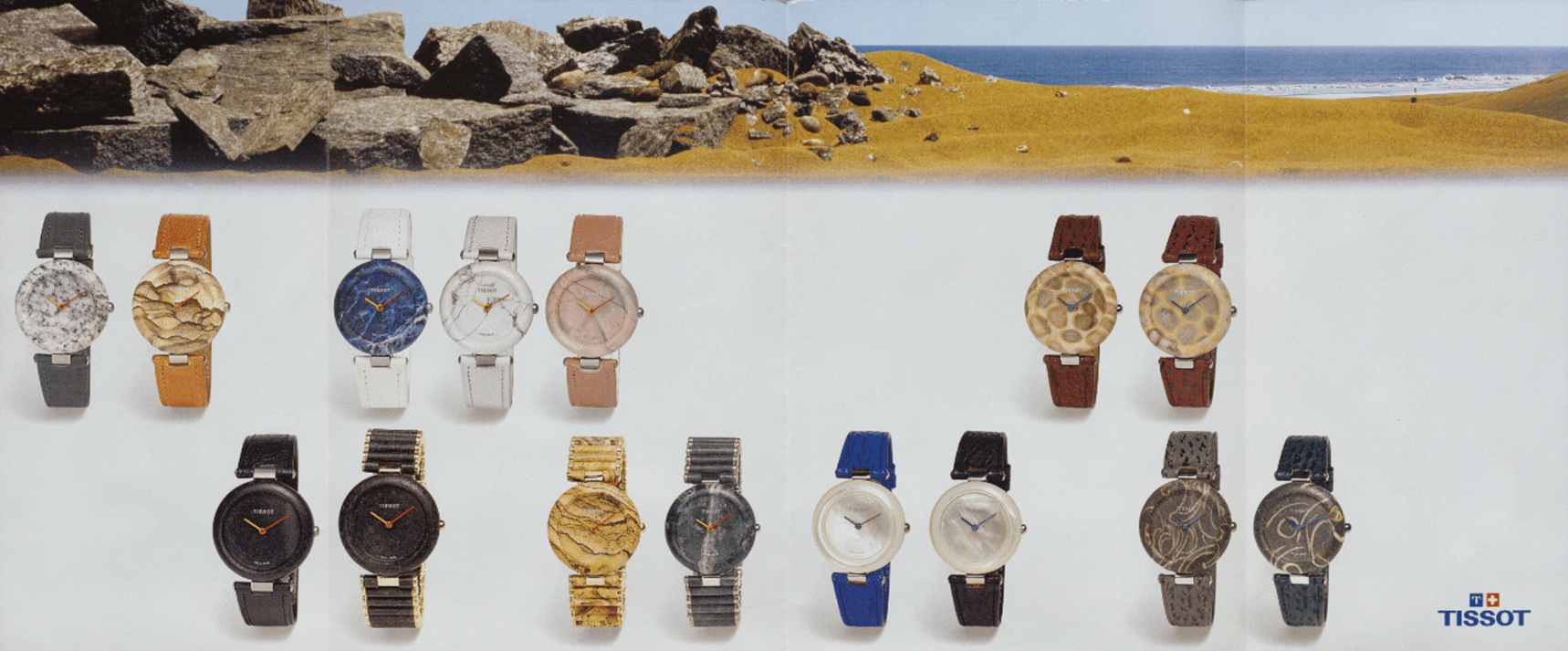 需要の高まりとともに、ティソはロックウォッチを 「自然のジュエリー」 として位置づけ、広告キャンペーンでは 「Formed by nature and unearthed by Tissot(自然によって創られ、生み出されたティソウォッチ)」 というキャッチフレーズを展開しました。