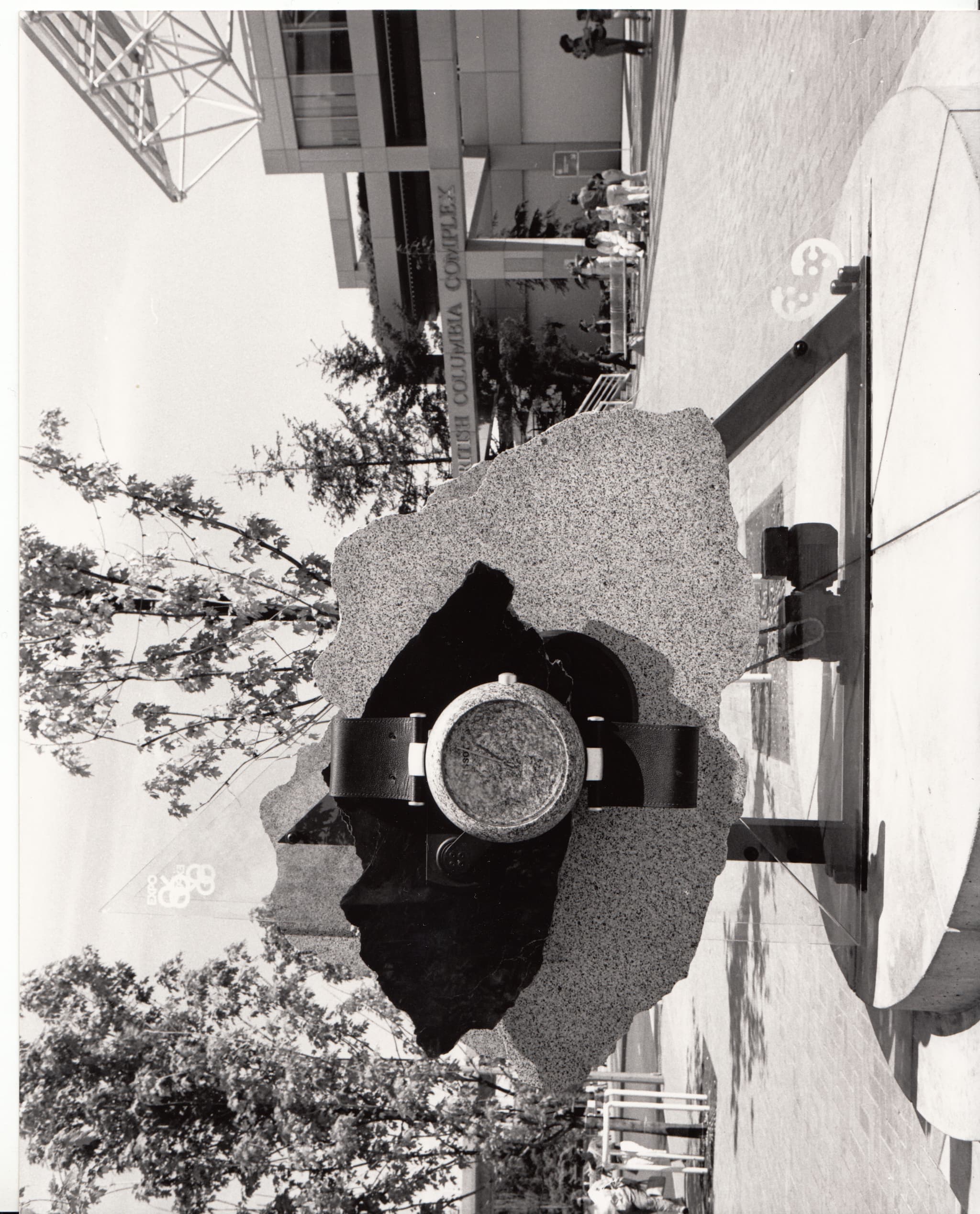 1986年には、カナダ・バンクーバーで開催された Expo 86 において、ブリティッシュコロンビアのパビリオンの屋外に 巨大な「ロッククロック」 が展示されました。スイス・アルプス産の花崗岩とブリティッシュコロンビア産の翡翠で作られた印象的な彫刻は、人気の待ち合わせ場所となり、万博後もしばらくの間バンクーバーで展示されました。