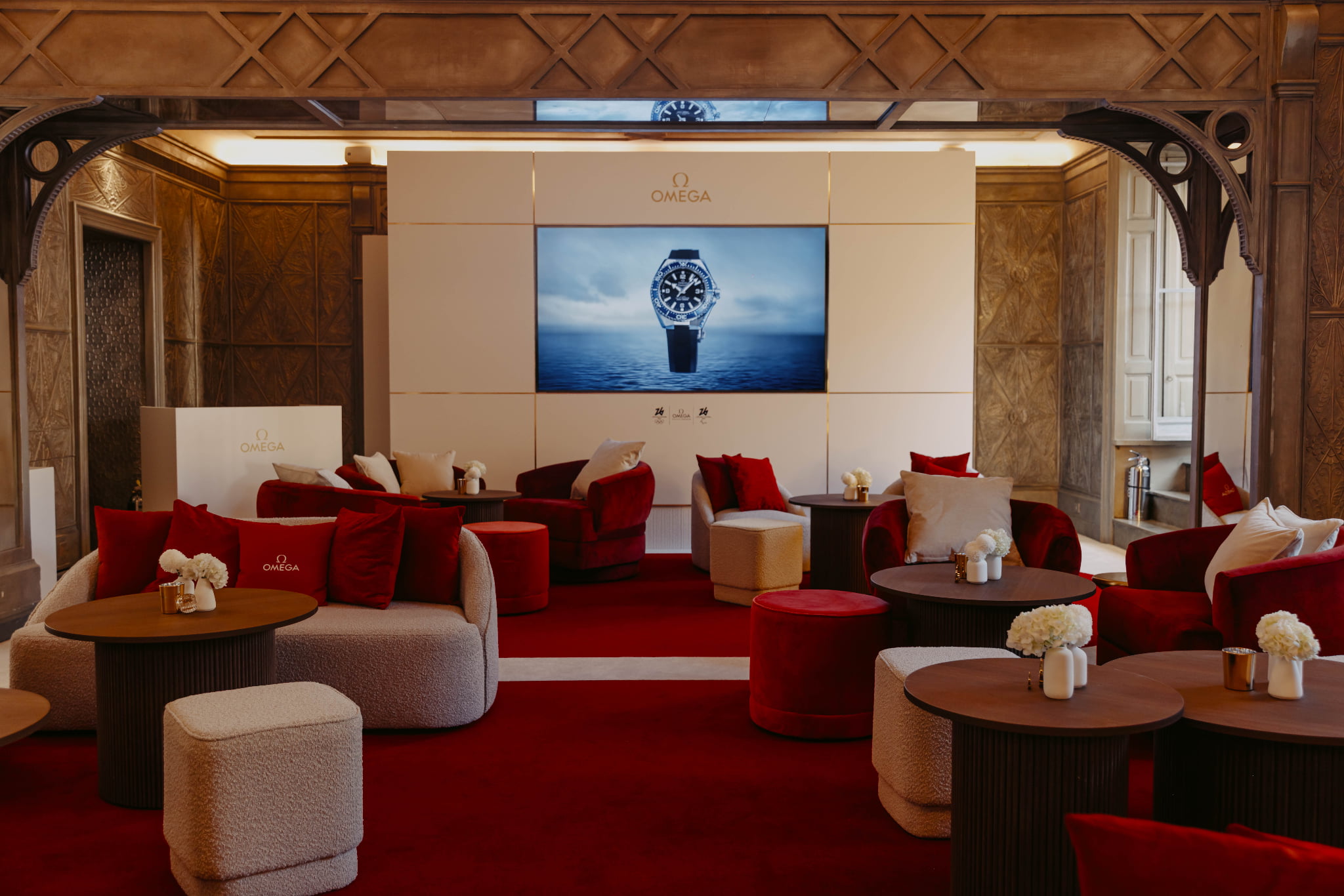 日中はエレガントで没入感ある空間の中、世界最高峰と称されるクラッコの料理を愉しみながら、大型スクリーンで競技観戦するひとときを提供し、夜はゲストともに華やかなイベントが繰り広げられます。こした特別空間を通じて、オフィシャルタイムキーパーとしての 94 年にわたる歩みを讃える場-それがオメガハウス ミラノです。