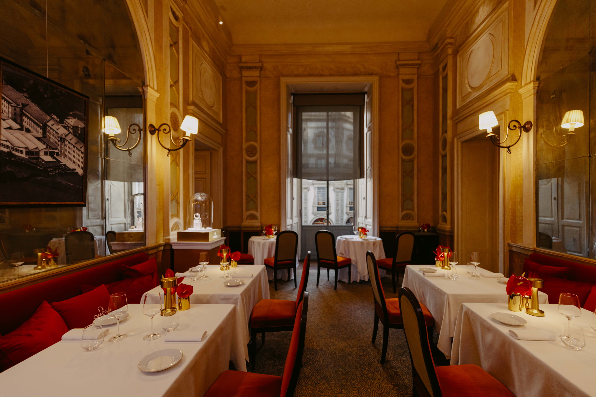 歴史あるアーケードは、高くそびえるガラスドームや装飾的なアイアンフレーム、そして自然光が降り注ぐ大理石のフロアで知られ、ミラノを象徴する名所のひとつです。レストラン内へ進むと、その洗練さはさらに深まり、エレガントな建築美と伝統と革新を融合させた料理が、上質な空間を演出します。1 階のカフェは、オメガのブランディングを施した『オメガ カフェ バイ クラッコ』へと姿を変え、カフェ クラッコ チームによる卓越したサービスのもと、通常営業いたします。