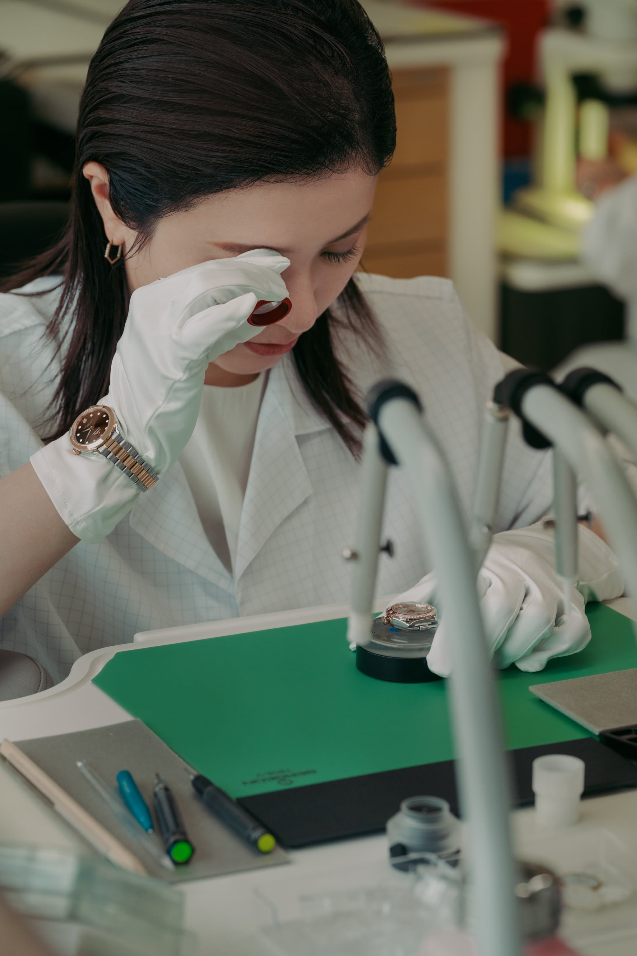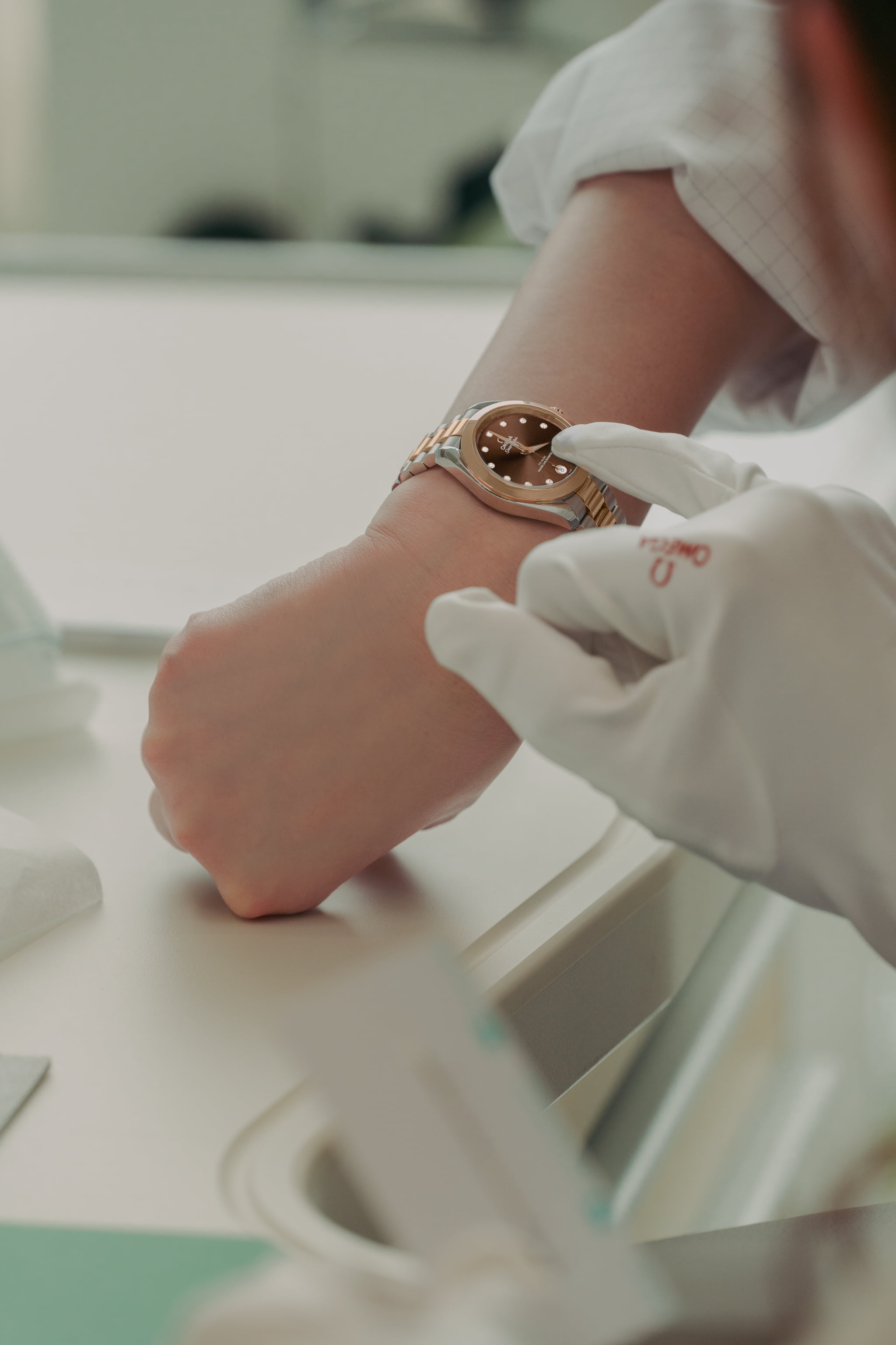 続いて工房では、時計の組み立てやケーシングなどの工程を見学。ウォッチメーカーとの対話を 通じて、伝統と革新が融合する現場を訪問し、現代にあふれる磁気が時計に及ぼす影響を知ると同時 に、マスタークロノメーター認定を取得したオメガの高い信頼性を認識しました。また、今回特別に 「コンステレーション」のダイアルに配される 6 時位置の星のセッティングも間近で見ることができ、 卓越したクラフツマンシップに深い感銘を受けました。